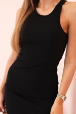 Sukienka damska prążkowana bez rękawów o dopasowanym kroju czarna