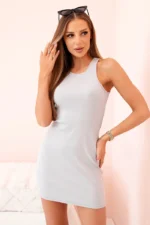 Sukienka damska prążkowana bez rękawów o dopasowanym kroju szara