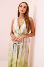Sukienka damska z wiskozy z haftem oliwkowa