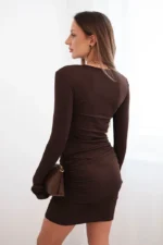 Ta dopasowana sukienka damska z długim rękawem to świetna propozycja dla kobiet ceniących sobie wygodę i kobiecy styl. Uszyta z elastycznej wiskozy, pięknie dopasowuje się do sylwetki, podkreślając jej atuty. Marszczenia po bokach nadają jej nowoczesnego charakteru, a długość mini subtelnie eksponuje nogi. To idealna opcja zarówno na co dzień, jak i na wieczorne wyjście – wystarczy dobrać odpowiednie dodatki.