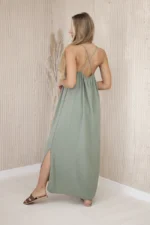 Sukienka długa na ramiączka jasny khaki