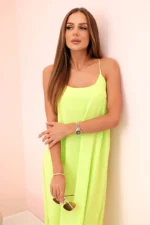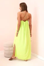 Długa sukienka na ramiączka to elegancki i kobiecy element garderoby, który może być idealny na wiele okazji. Taki rodzaj sukienki jest bardzo uniwersalny i można go nosić zarówno na ważne uroczystości, jak i na codzienne wyjścia. Sukienka ta wykonana jest z lekkich materiałów, co sprawia, że jest bardzo wygodna w noszeniu i idealnie sprawdzi się w ciepłe dni. Taka sukienka jest popularne na całym świecie, a jej klasyczny design sprawia, że zawsze jest modna i stylowa. Rozmiar jest uniwersalny i będzie odpowiedni dla Pań noszących rozmiar S, M lub L.