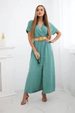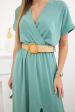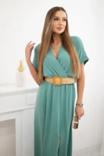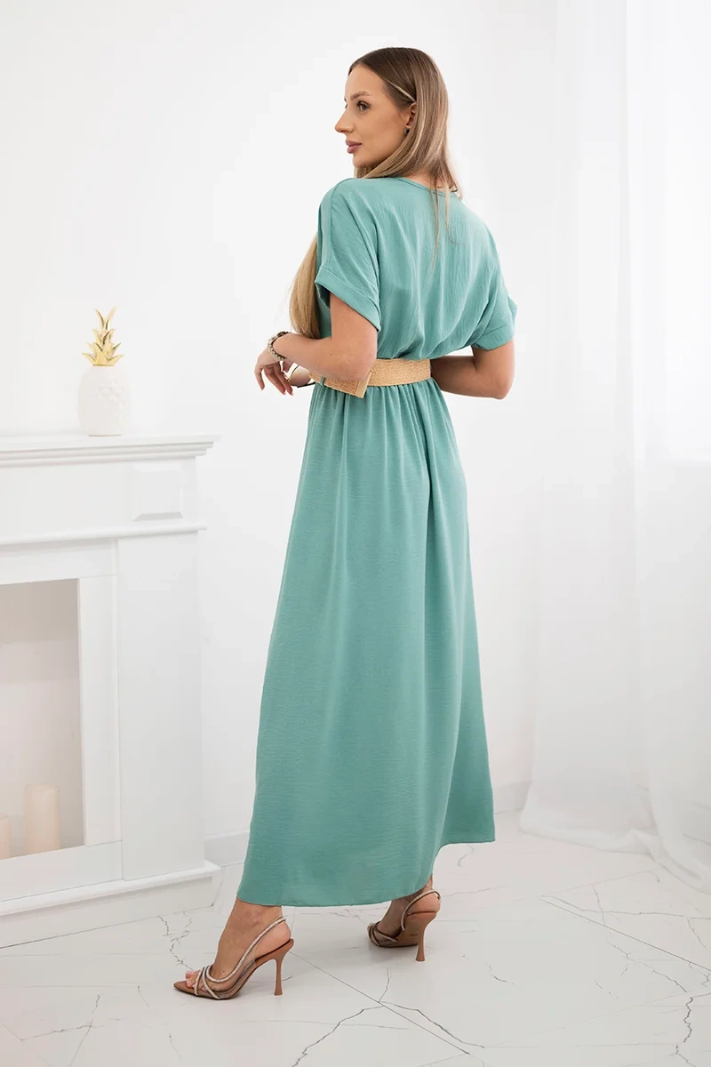 Sukienka długa z ozdobnym paskiem ciemno miętowa