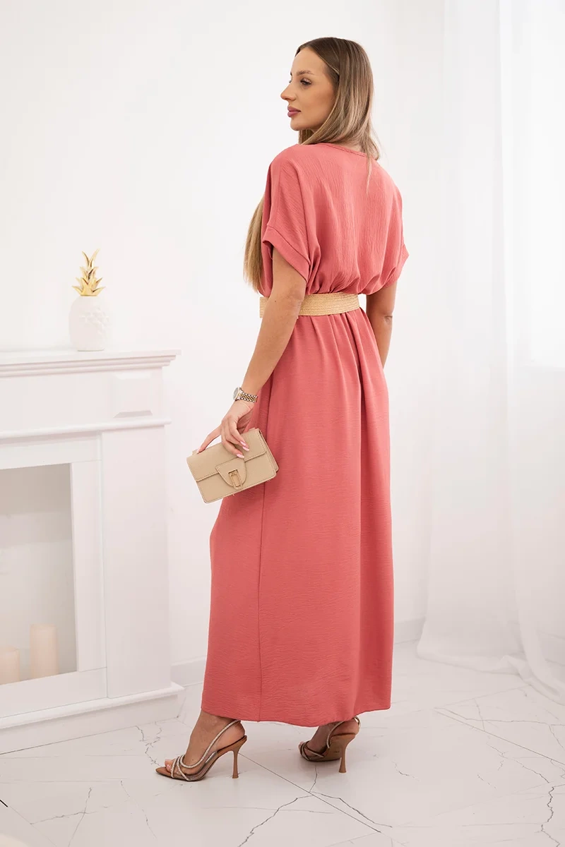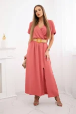 Prezentujemy Państwu wygodną sukienkę z ozdobnym paskiem. Sukienka posiada na dole rozcięcia. Sukienka wykonana jest z wysokiej jakości materiału. Bardzo ciekawa propozycja dla wszystkich Pań. Rozmiar jest uniwersalny i będzie odpowiedni dla Pań noszących rozmiar S, M lub L.