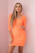 Sukienka dopasowana z dekoltem pomarańczowy neon