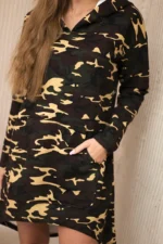 Prezentujemy Państwu modną sukienkę w moro. Sukienka posiada kaptur oraz dłuższy tył. Z przodu naszyta kieszeń. Sukienka z grubszej bawełny miękkiej w dotyku. Doskonała propozycja dla wszystkich Pań. Sukienka wykonana jest z wysokiej jakości materiału. Rozmiar jest uniwersalny i będzie odpowiedni dla Pań noszących rozmiar S, M lub L.