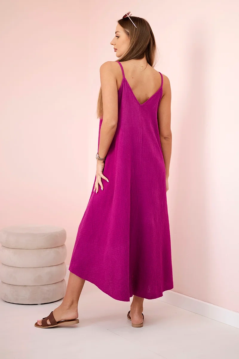 Sukienka muślinowa na ramiączkach ciemno fioletowa