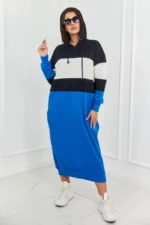 Sukienka trzykolorowa z kapturem czarny + ecru + chabrowy