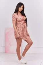 Prezentujemy Państwu modną sukienkę. Sukienka posiada wzór w kropki. Sukienka wiązana w talii. Idealna pozycja na co dzień. Sukienka wykonana jest z wysokiej jakości materiału. Rozmiar jest uniwersalny i będzie odpowiedni dla Pań noszących rozmiar S, M lub L.
