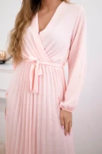 Sukienka wiązana z plisowanym dołem pudrowy róż