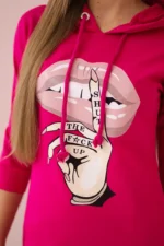 Sukienka z dłuższym tyłem i kolorowym nadrukiem fuksja