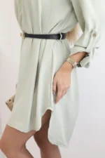 Sukienka z dłuższym tyłem i paskiem ciemno miętowa