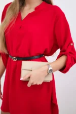Sukienka z dłuższym tyłem i paskiem czerwona