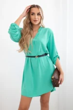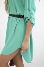 Sukienka z dłuższym tyłem i paskiem miętowa