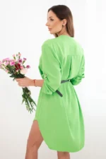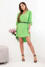 Sukienka z dłuższym tyłem i paskiem pistacjowa