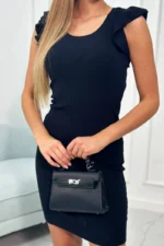 Prezentujemy Państwu modną sukienkę. Sukienka posiada falbanki przy rękawach. Sukienka dopasowana z materiał prążkowanego. Sukienka wykonana jest z wysokiej jakości materiału. Rozmiar jest uniwersalny i będzie odpowiedni dla Pań noszących rozmiar S, M lub L.