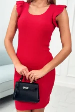 Sukienka z falbanką przy rękawie czerwona
