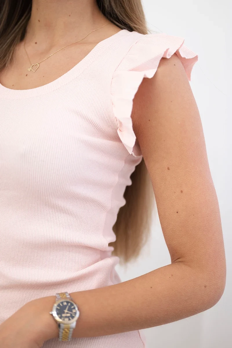 Sukienka z falbanką przy rękawie pudrowy róż