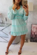 Prezentujemy Państwu modną sukienkę. Sukienka z dekoltem V oraz falbankami. Sukienka wykonana jest z wysokiej jakości materiału. Idealna na letnie dni. Rozmiar jest uniwersalny i będzie odpowiedni dla Pań noszących rozmiar S, M lub L.
