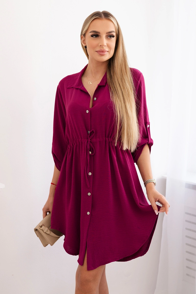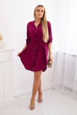 Sukienka z zapięciem na guziki i wiązaniem w talii bordowa
