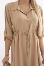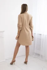 Sukienka z zapięciem na guziki i wiązaniem w talii camelowa