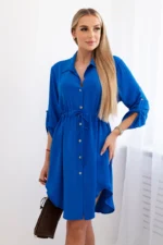 Sukienka z zapięciem na guziki i wiązaniem w talii chabrowa