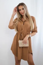 Sukienka z zapięciem na guziki i wiązaniem w talii ciemny camel
