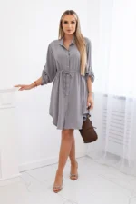 Sukienka z zapięciem na guziki, wiązaniem w talii oraz kołnierzykiem to połączenie elegancji i subtelnego uroku w jednym. Guziki dodają sukience klasy i stylu, a zarazem umożliwiają łatwe zakładanie i zdejmowanie. Wiązanie w talii podkreśla kobiecą sylwetkę, nadając jej indywidualny charakter i zapewniając idealne dopasowanie do figury. Kołnierzyk dodaje elegancji i wyrafinowania, nadając sukience delikatny i subtelny akcent. To idealna opcja na różne okazje, od spotkań biznesowych po romantyczne randki, zapewniając jednocześnie wygodę i modny wygląd. Rozmiar jest uniwersalny i będzie odpowiedni dla Pań noszących rozmiar S, M lub L.