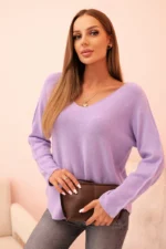 Sweter damska z wiskozą z dekoltem w serek fioletowy