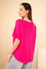 Sweter damski z krótkim rękawem o luźnym kroju fuksja