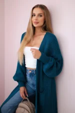 Sweter długi kardigan morski