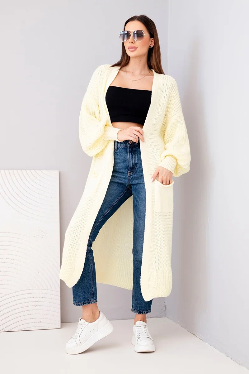 Sweter długi kardigan żółty