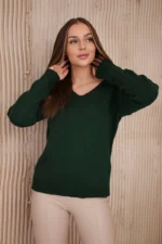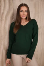 Sweter z dekoltem V ciemno zielony