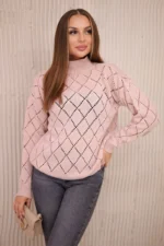 Sweter z półgolfem i wzorem w romby pudrowy róż