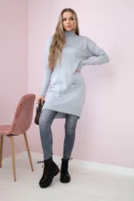 Prezentujemy Państwu modny sweter. Sweter posiada kołnierz ze stójką. Dwie kieszenie z przodu. Sweter zakładany przez głowę. Klasyczny krój idealny do każdej stylizacji na zimę. Ciepły miły w dotyku. Sweter wykonany jest z wysokiej jakości materiału. Rozmiar jest uniwersalny i będzie odpowiedni dla Pań w rozmiarze M, L, XL.