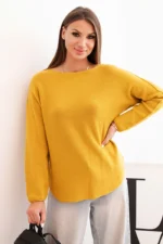 Sweterek damska z wiskozy z długim rękawem i okrągłym dekoltem musztardowy